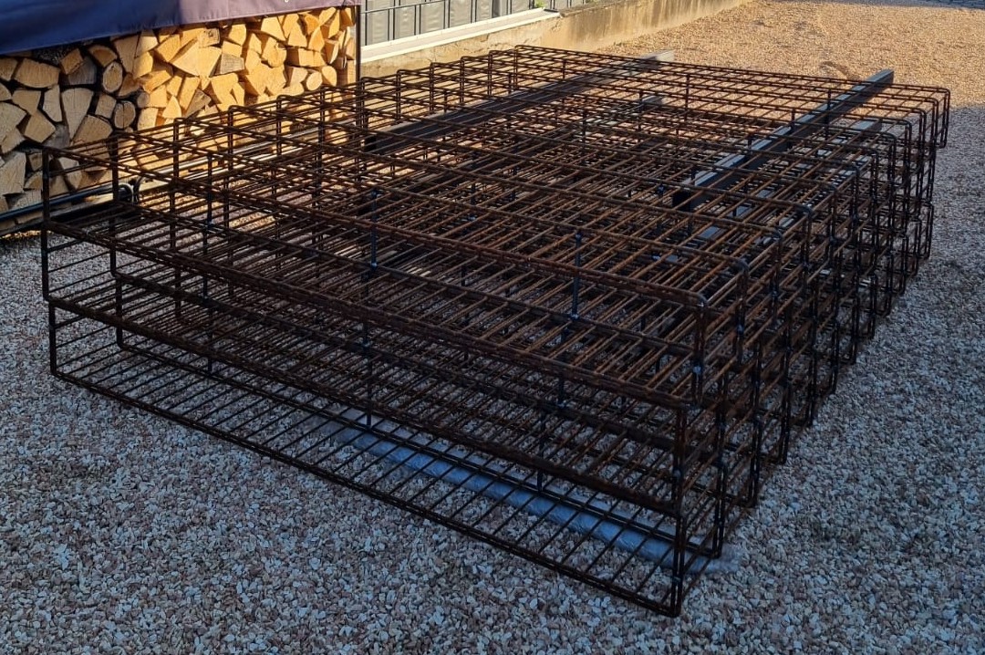 Ganz wichtig: Zur Stabilität und um ein „Ausbeulen“ zu verhindern, sind im Inneren des Korb aus Steinen zusätzliche Streben (Abstandshalter) von 10 mm eingeschweißt.